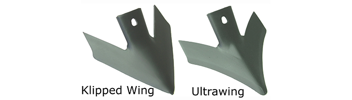 Quick Change Field Cultivator Sweeps are available in two wing configurations: Klipped Wing and the original Ultrawing.